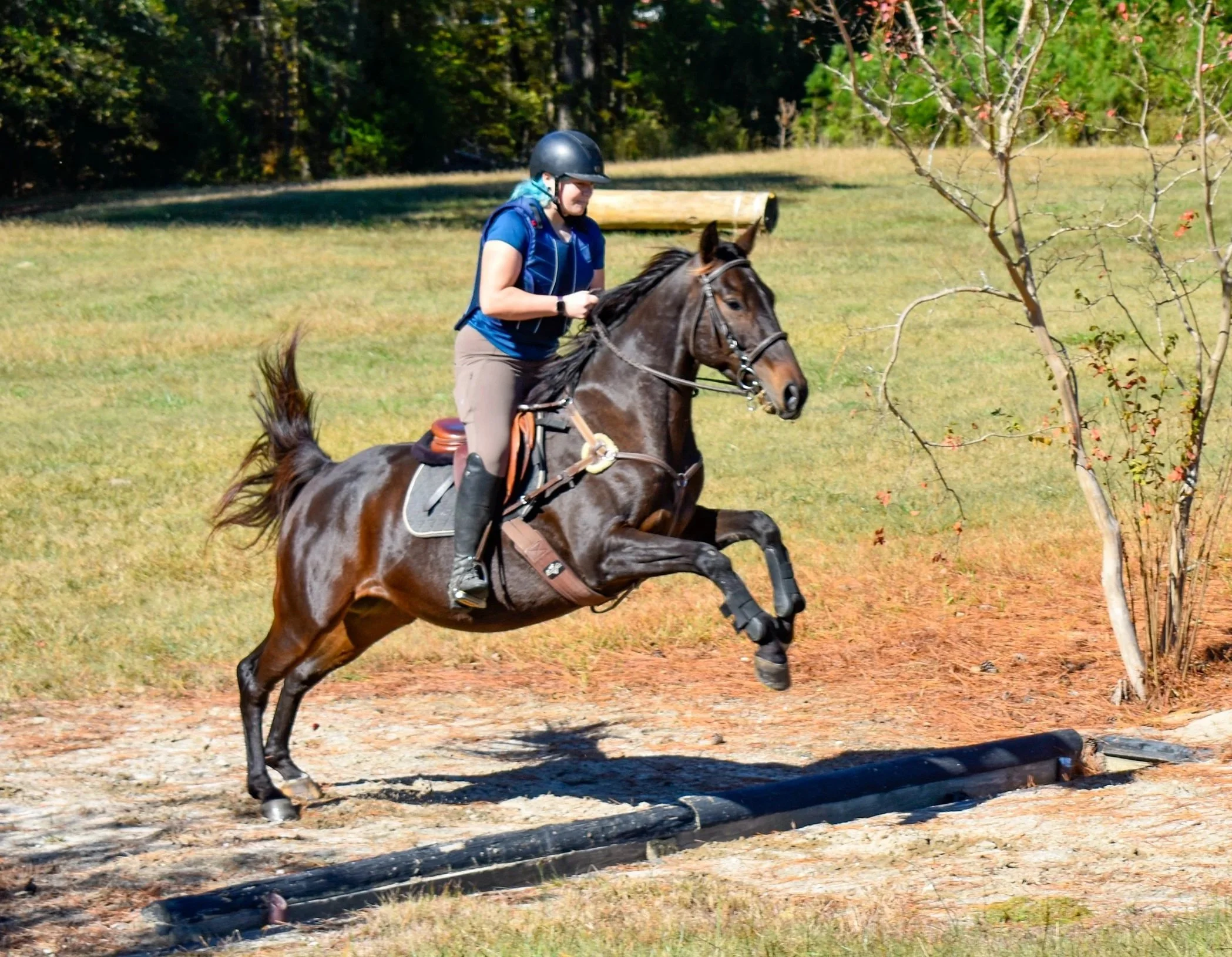 Buck is a 14-year-old flea-bitten grey Quarter Horse gelding. He loves trail rides and going out of the arena, but he does enjoy arena work too. He really loves cross-country jumping and isn’t for the fainthearted riders as he gets very excited when he knows it’s time for cross-country. He has competed well through Starter 3-phase, and Beginner Novice jumping classes. Before he was purchased in early 2020, he was primarily a western horse. Sarah and Mark own Buck and he is Sarah’s main horse for riding and trails.